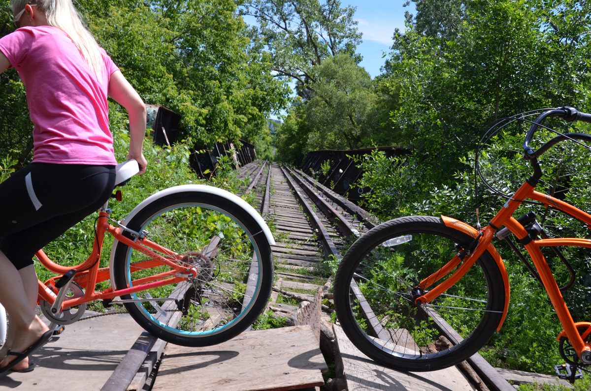 below: This is the same railway line as the bridge shown above but farther down the valley. A very makeshift bike crossing.