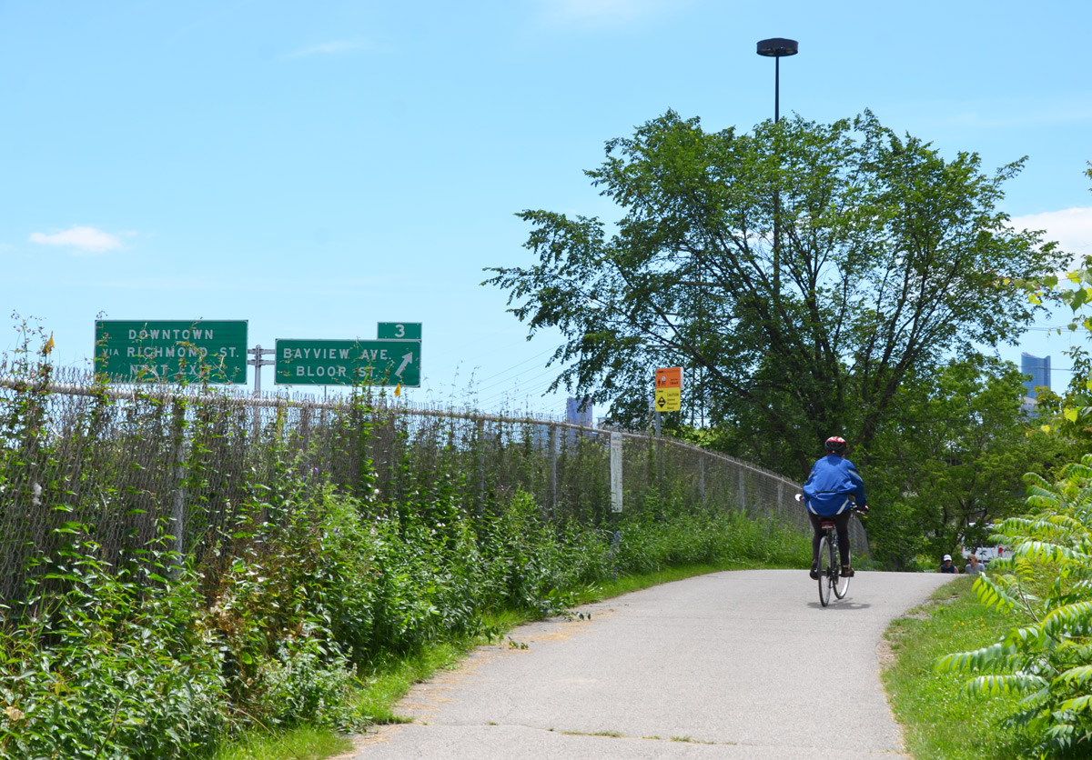 After a short visit at the Brickworks, including a quick bite to eat at the Farmers Market, we headed south. The first part of the walk was back along Bayview to Pottery Road since Brickworks is on the west side of the Don River and the trail is on the east side. I didn’t take any pictures – walking along a major road that doesn’t have a sidewalk needs all of your attention. There is a bike path that parallels Bayview on the east side but getting to it was either a long detour or a dash across the road and over a barrier. We made the decision to stay on the west side and cross with the lights at Pottery Road.