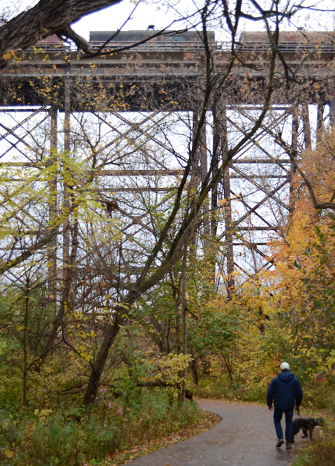 below: Ideas! I’ve been meaning to find the end of this bridge and walk at least part of it – if I do, I’ll let you know! It’s the bridge that you see beside the Brickworks. It was built in 1928 and is 335m long. It is part of the Don Branch of the CPR and it ran from Leaside Junction to the downtown core until the line was closed in 2007.