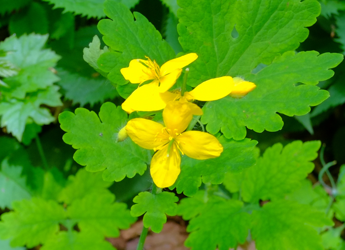 below: Greater Celandine growing in the shadows.