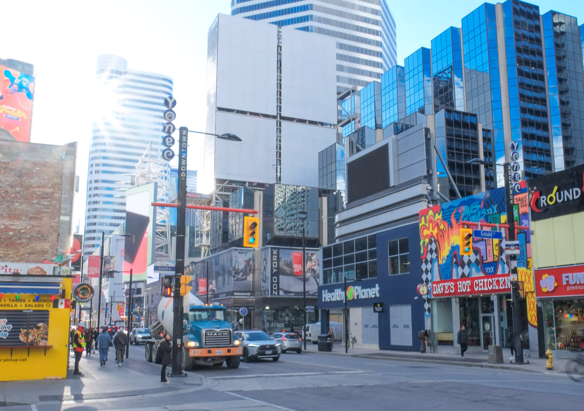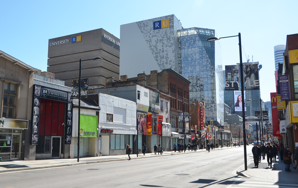 below: Another view from Yonge and Gould, this time looking south to Dundas Street.