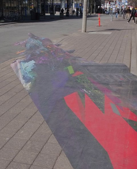 below: At the intersection of Gloucester Street and Yonge is this new red creation, a sculpture by Albert Paley