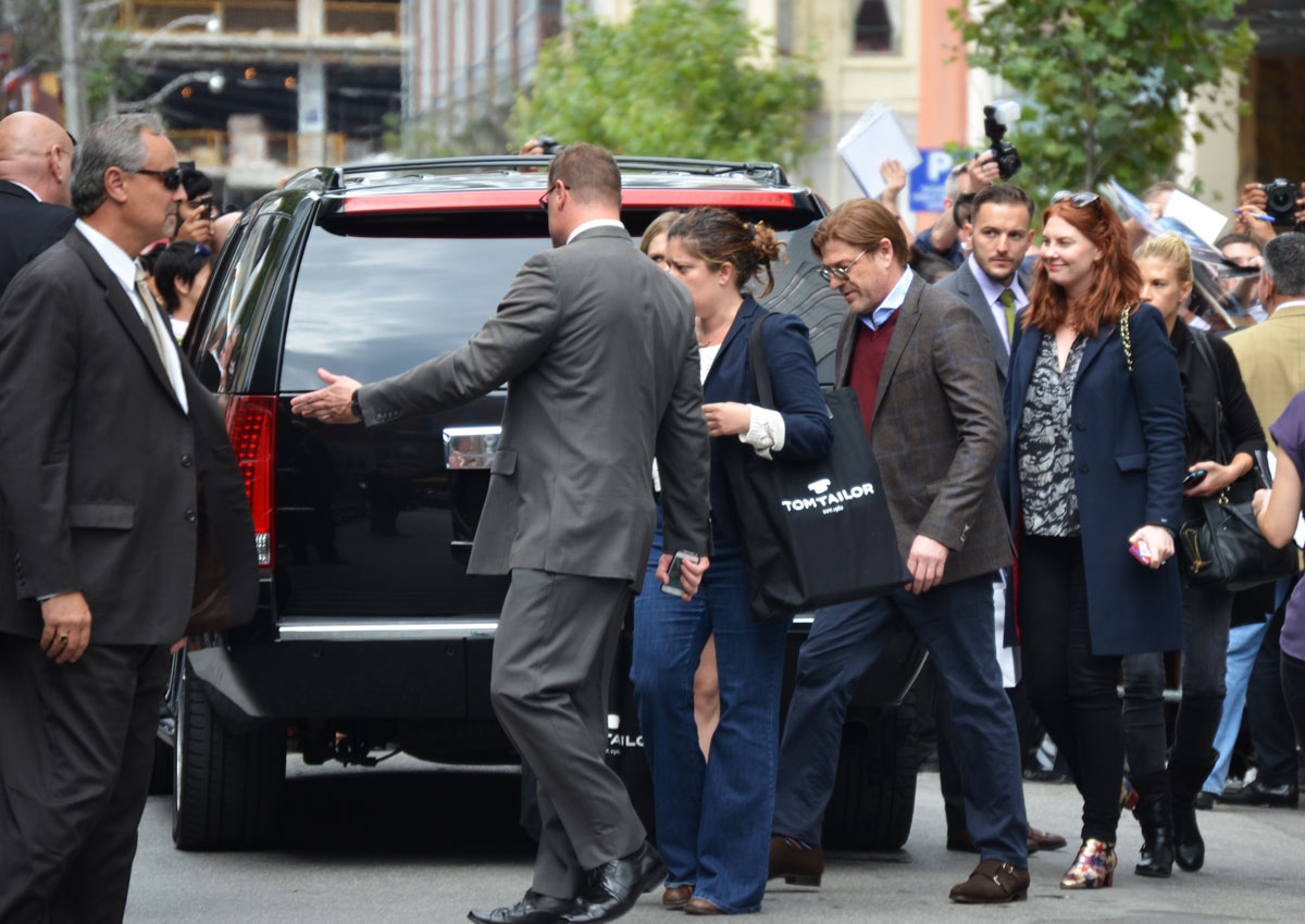 below: Sebastien Stan walks to a car after signing a few autographs.   When he first came out the door, there were a few, “Who’s that?”.  The answers were almost all, “Captain America”.