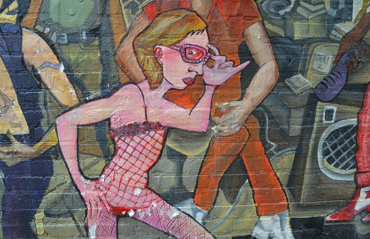 I also liked the way that the street art on the open gate merged with the painting on the wall behind.