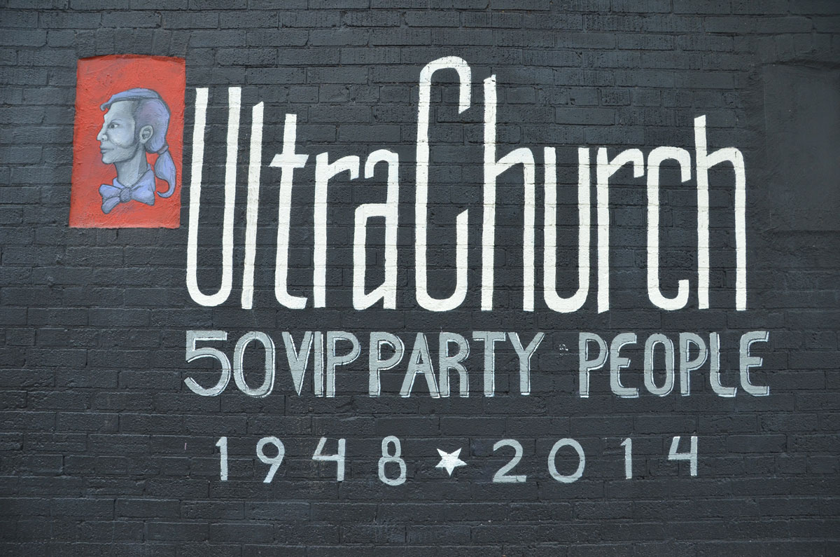 below: A number of these little paste-ups (the guy in the yellow frame) by t-bonez have sprung up around downtown. This one is on Augusta.
