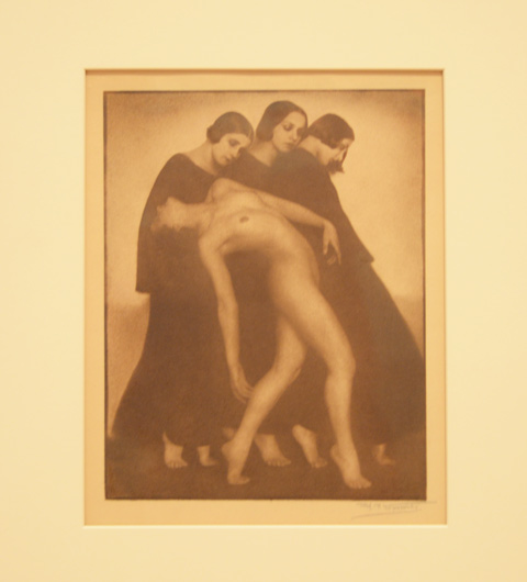 below: ‘Bewegungsstudie’ (‘Movement Study’) 1926 by Rudolph Koppitz (Austrian, 1884-1936), bromoil print. Koppitz was a leading avant-garde photographer of his time. Bromoil prints are slightly fuzzier than other photographs as the image is produced with an oil based paint.