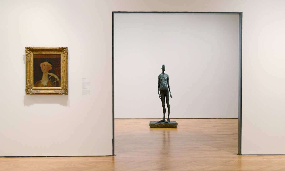 below: A woman’s portrait by Modigliani and a sculpture of a female form in the room beyond. The latter is “The Leaf”, 1948, by Germaine Richier. She’s a forlorn figure, standing naked and all alone.
