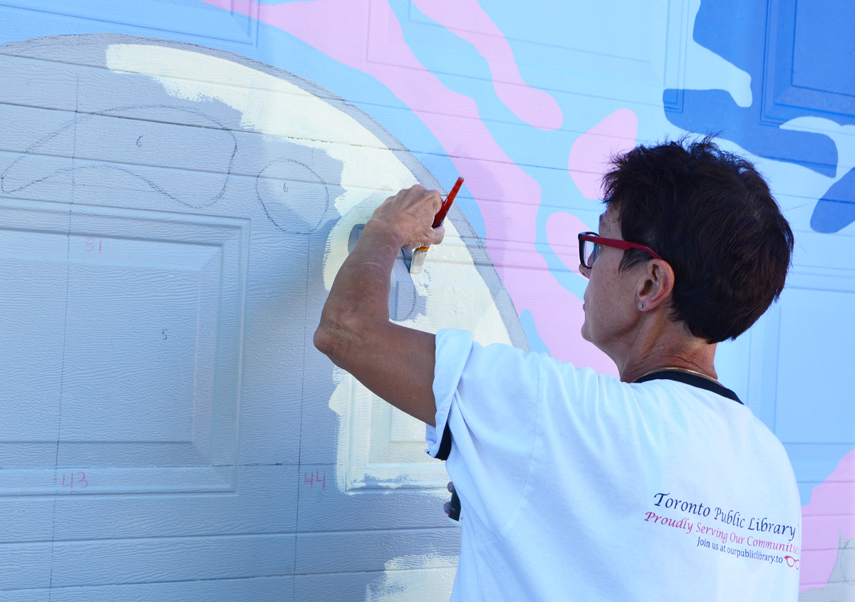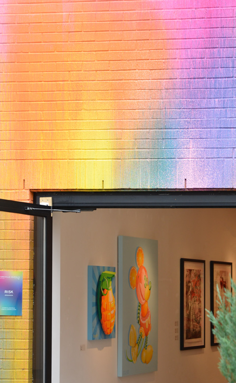 below: A 33wallflower33 pasteup in the foreground, with a corner of one of Nick Sweetman’s bird murals in the background.