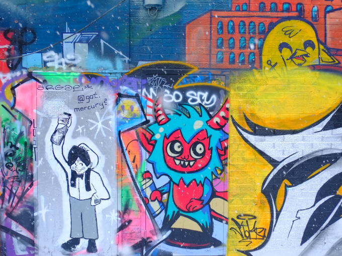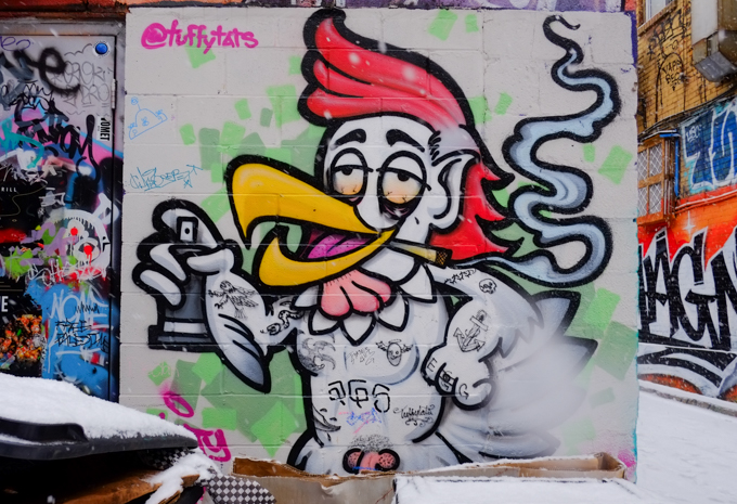 My previous post, “skateboard portraits” was from a walk down Graffiti Alley the other day. This post contains more photos that I took that snowy afternoon… so, let’s take a look!