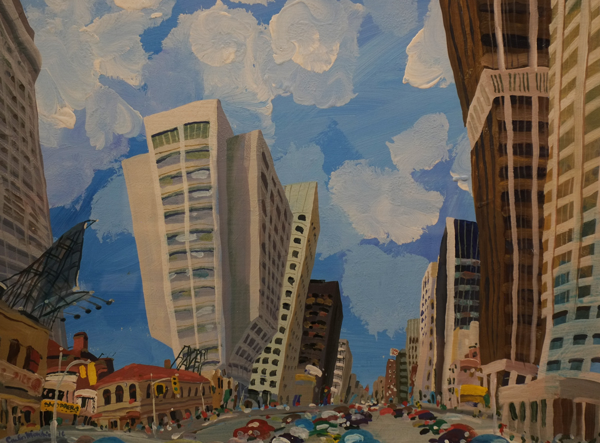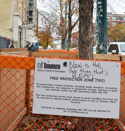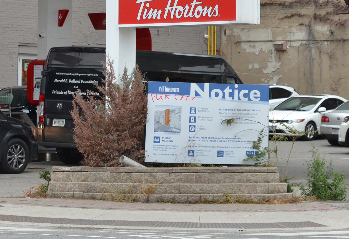below: Looking northwest from the corner of Adelaide and Jarvis