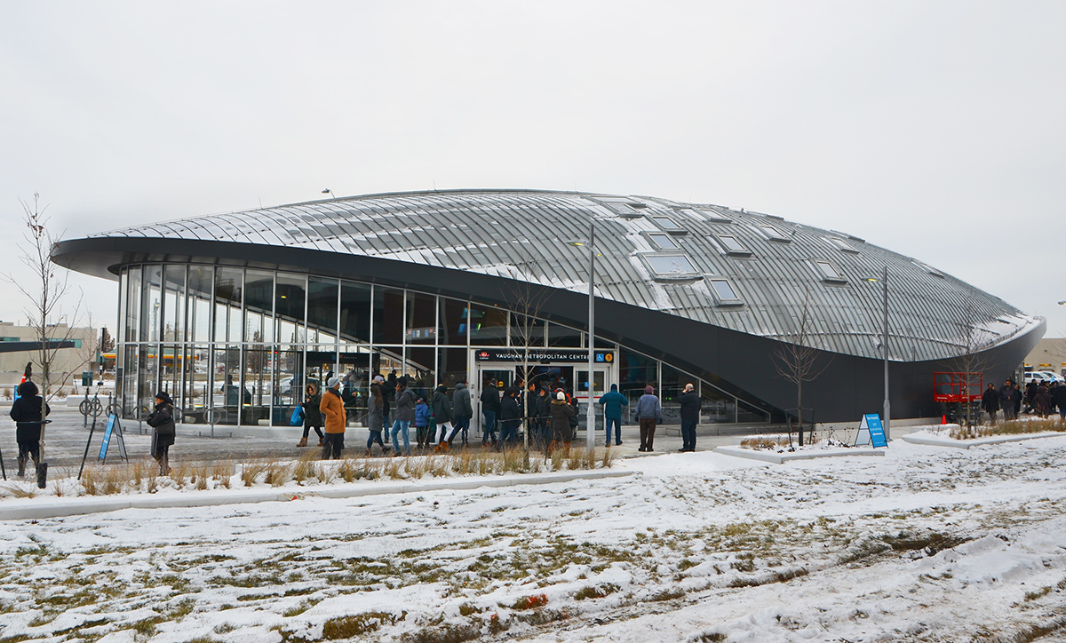 below: Vaughan Metropolitan Centre station, from the outside