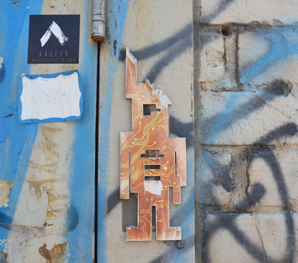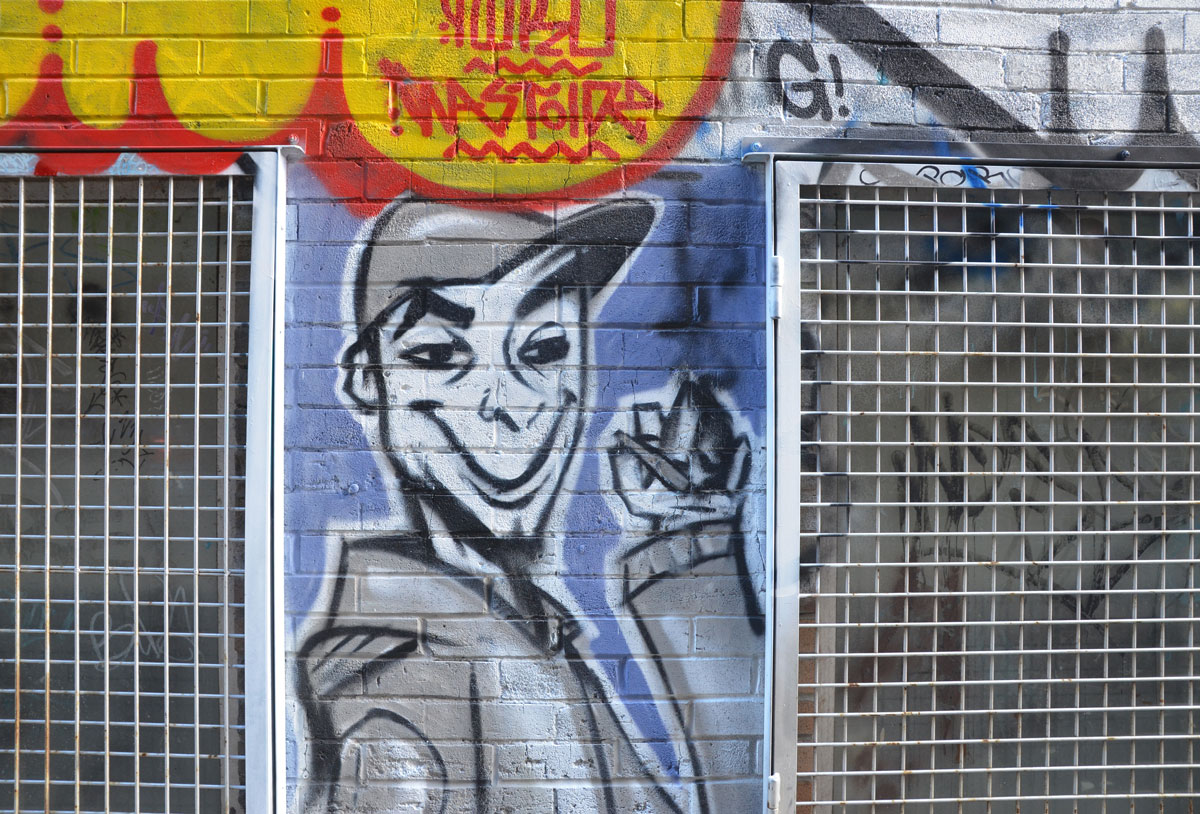 below: An early Birdo piece, although the scroll names or street artists too. The first street art in the alley dates from 2012 when a group of artists painted some of the garages here.