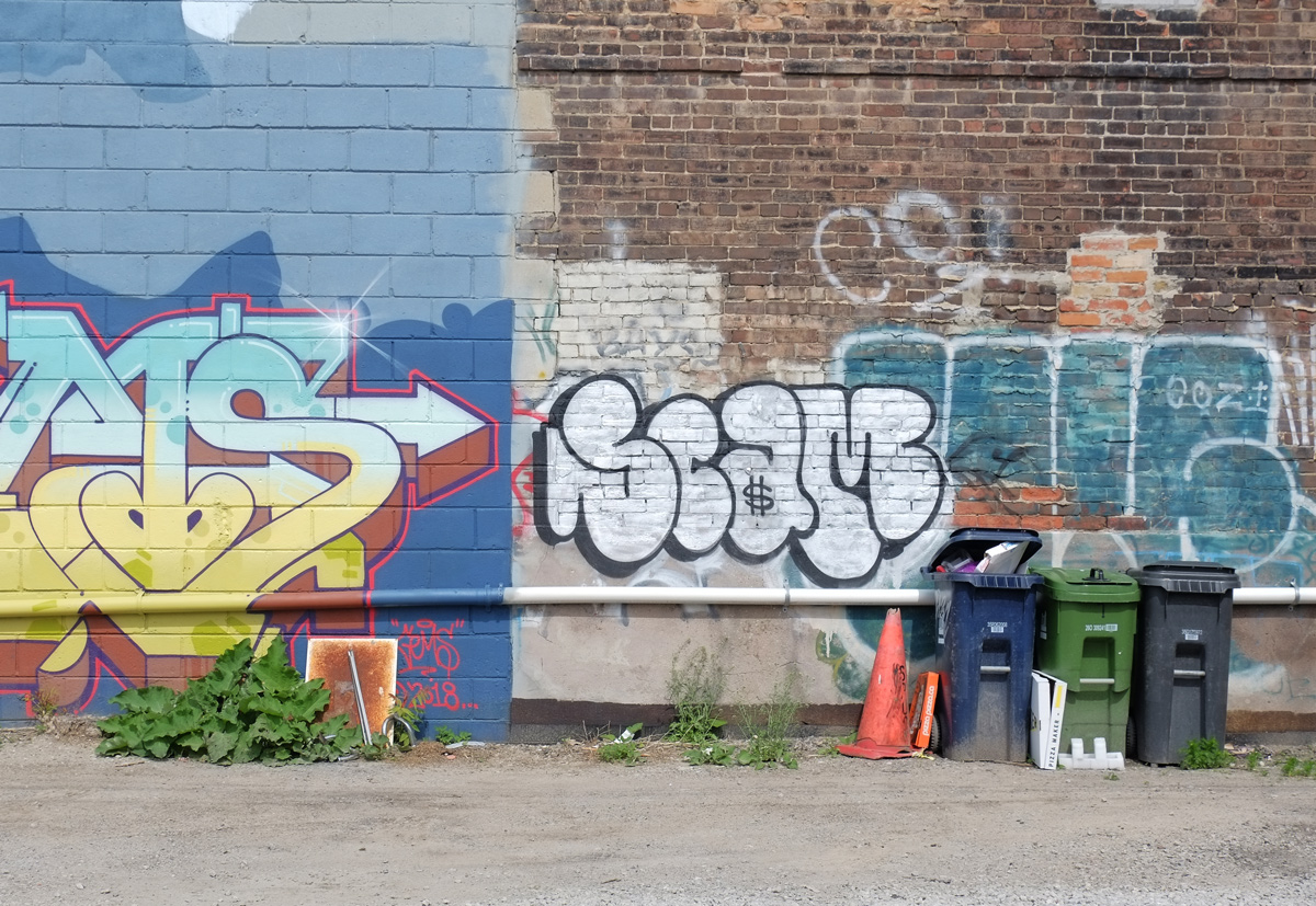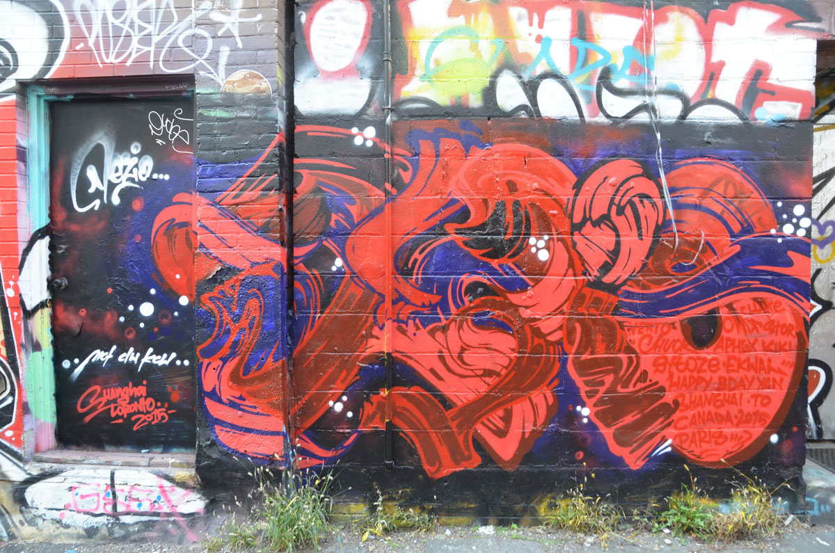 For a number of years now, there has been a lot of street art and graffiti in an alley that runs behind the east side of Ossington starting at Queen Street and ending one block north at Humbert. Some of it is interesting; some is not. A few garages and walls look the same as they did 12 or 13 years ago so some of these photos may look similar to older photos used in this blog.