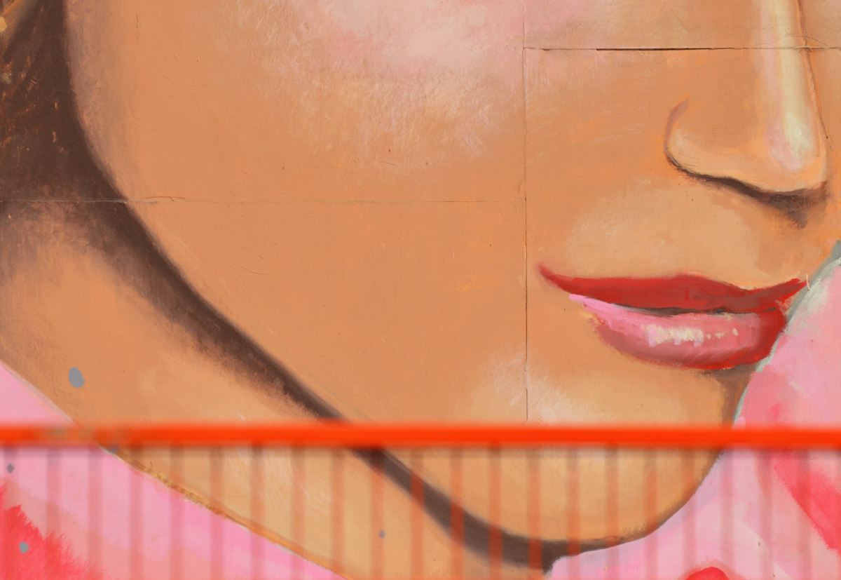 below: Large pink and white swirls and curls cover a wall. Any time that you see swirls like these, think Flips because that’s sure to be the artist that painted them.