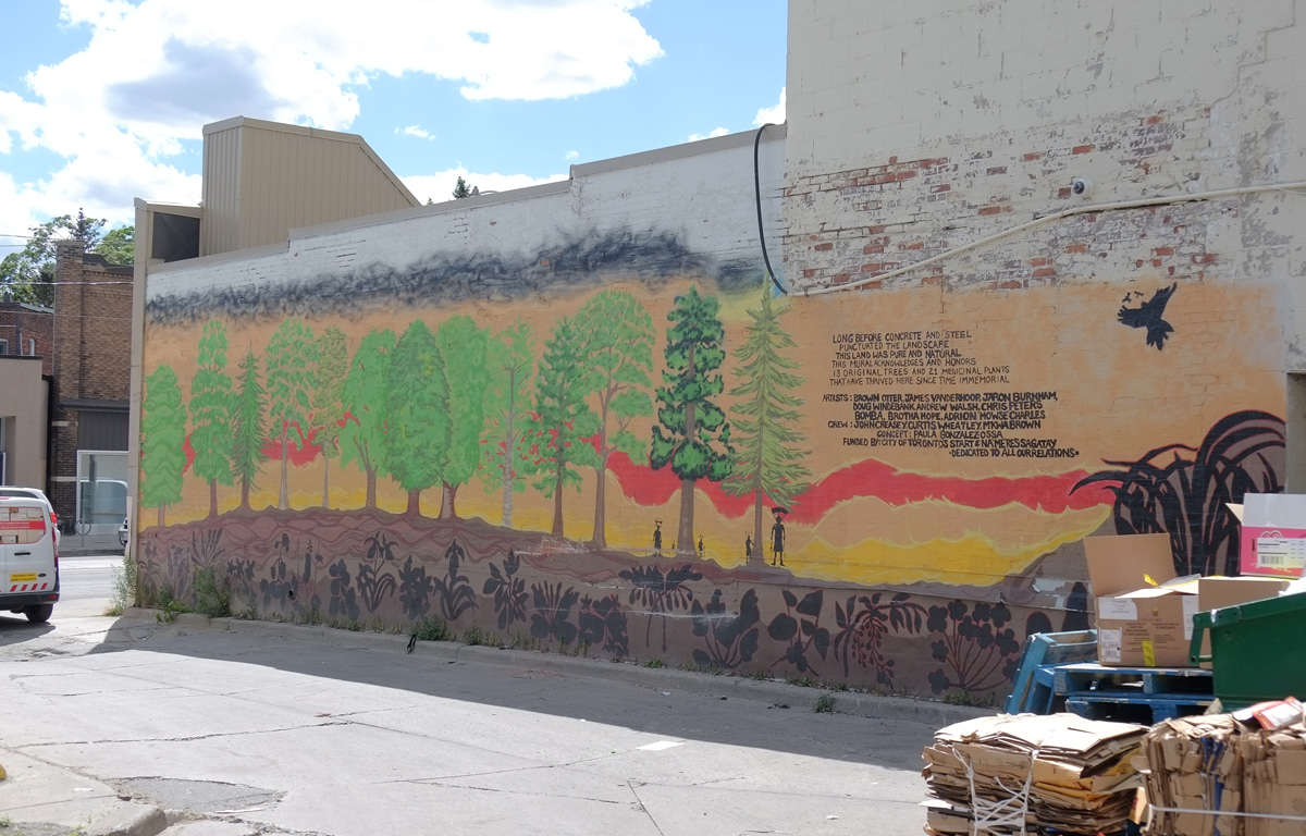 The mural was funded by Toronto’s Start program (street art) and Na’Ma’Res Sagatay, a residence for indigenous men that is nearby.