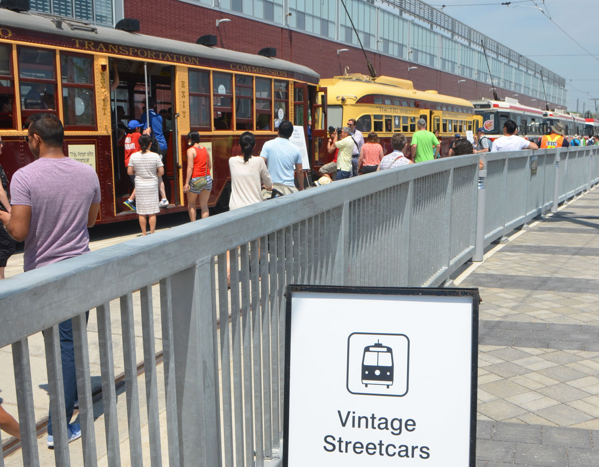 below: There were renovated vintage streetcars on display. On the left is a 1921 Peter Witt streetcar and next to it is a PCC streetcar from the early 1950’s.