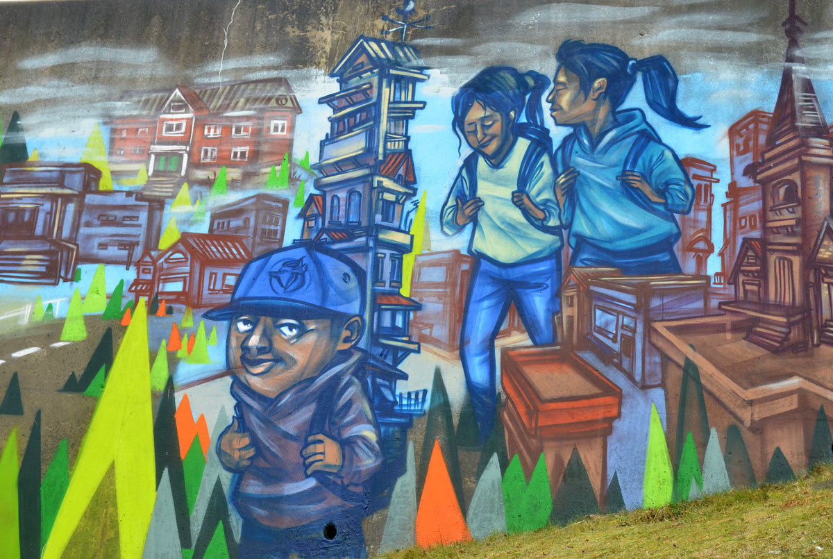 This post is about community involvement and the murals that result. They aren’t great art and they weren’t meant to be. They are about the stories we tell about ourselves and our communities. They brighten our public spaces and enrich our neighbourhoods.