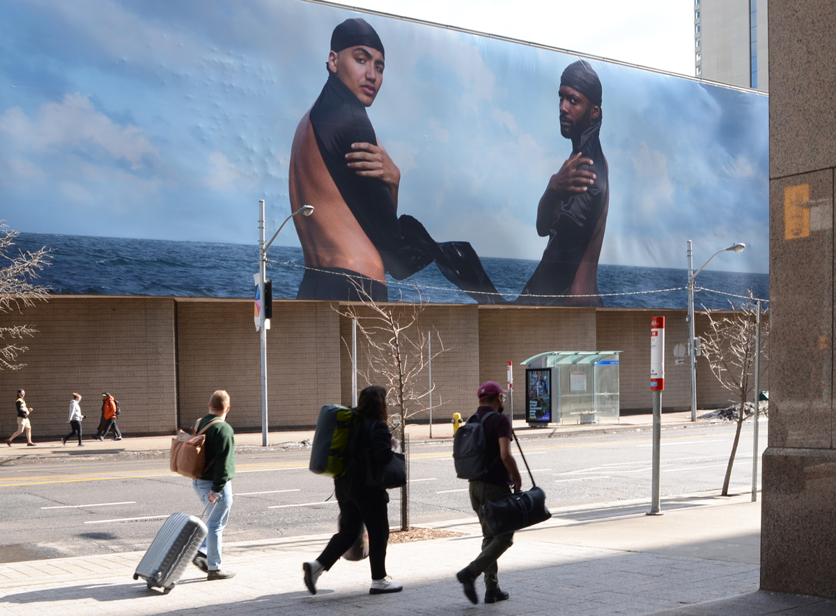 below: Esmaa Mohamoud‘s large image titled: ” The Brotherhood FUBU (For Us, By Us)” covers 37 x 144 feet (or 11 x 44 metres).