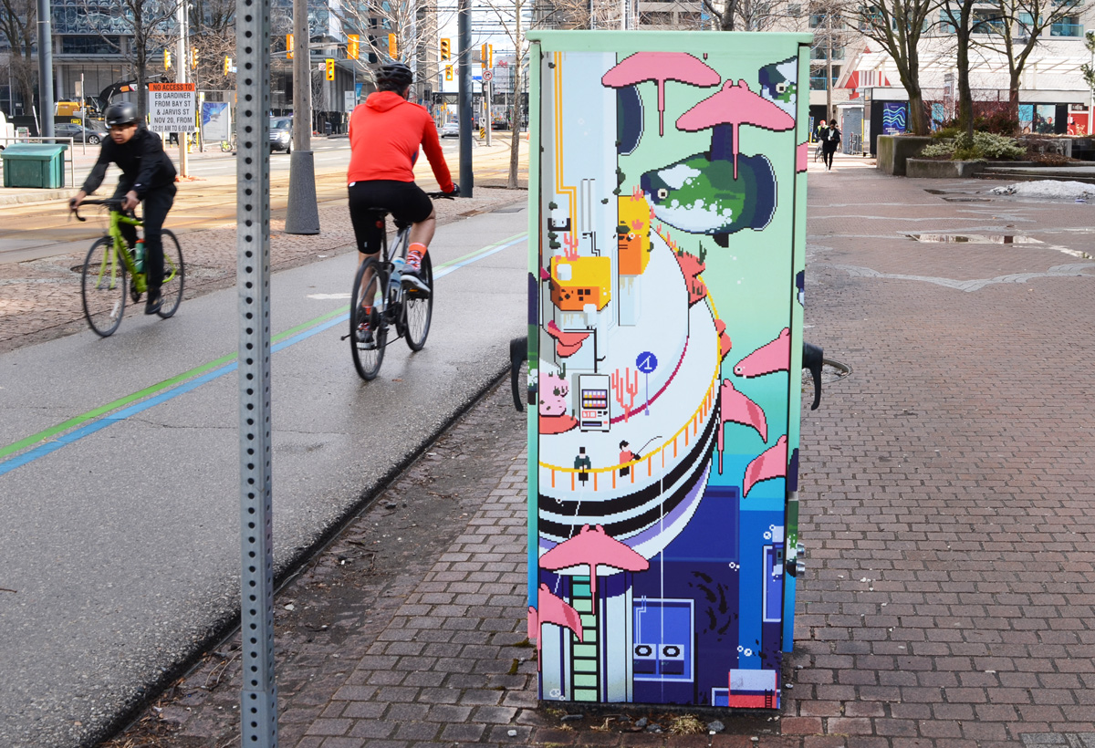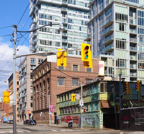 below: Hoardings on Lower Simcoe street – “A Stroll Through the City” by Camilla Teodoro