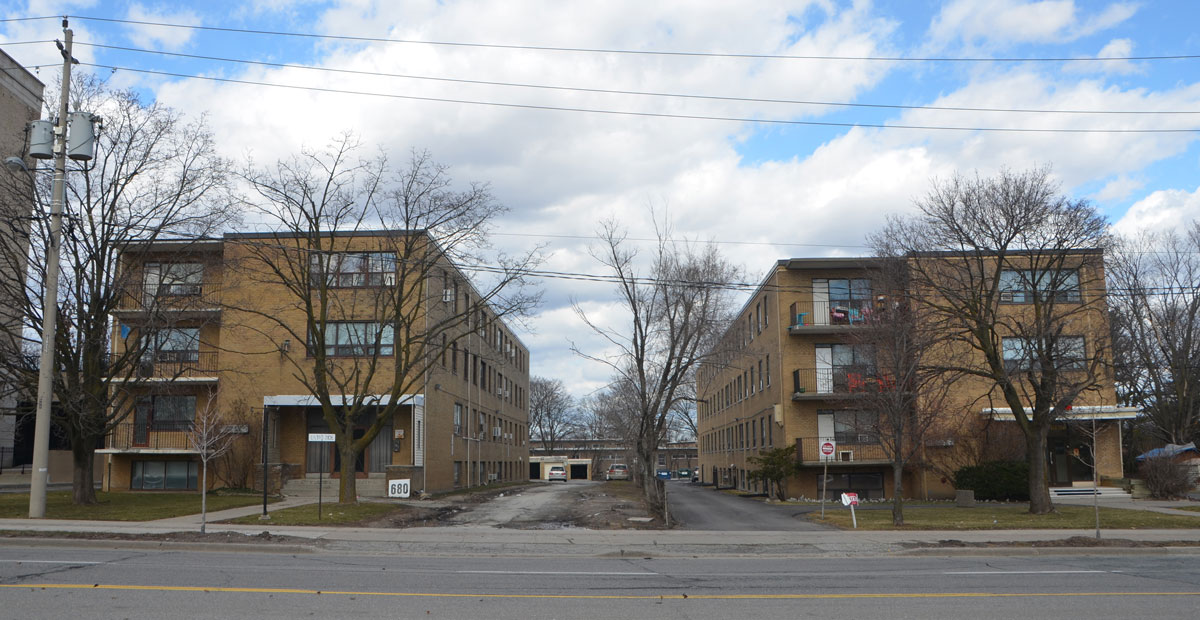 below: Apartments on Sheppard (south side, east of McCowan)