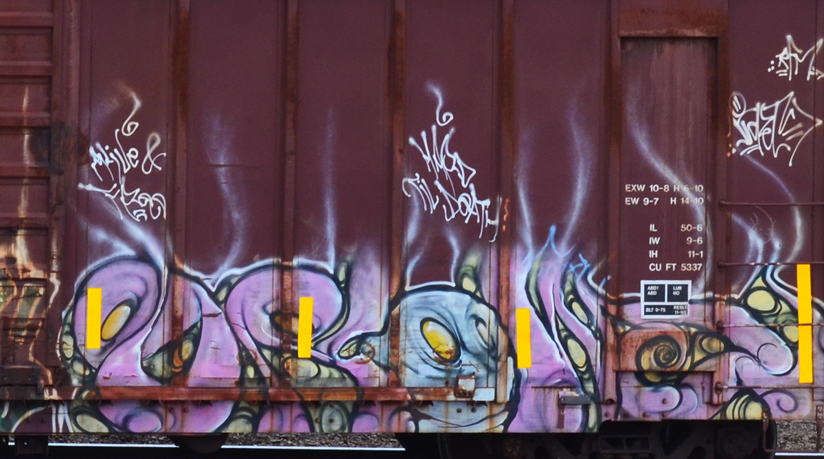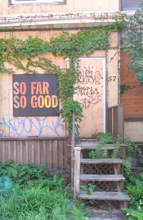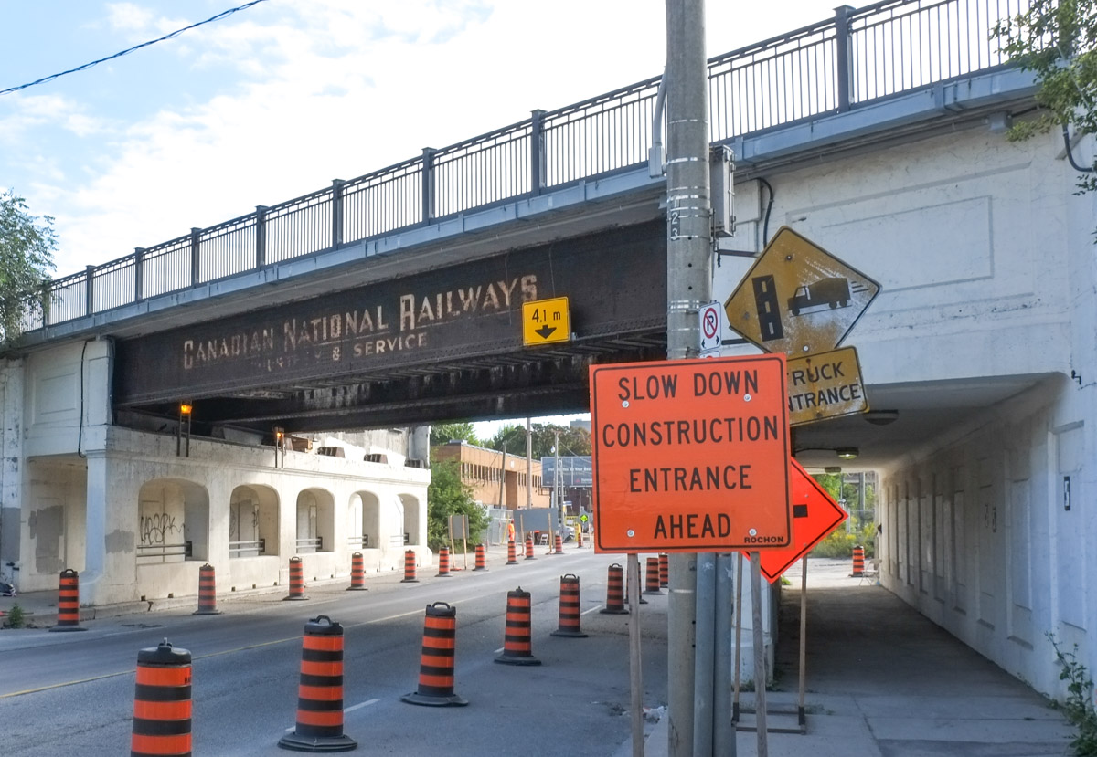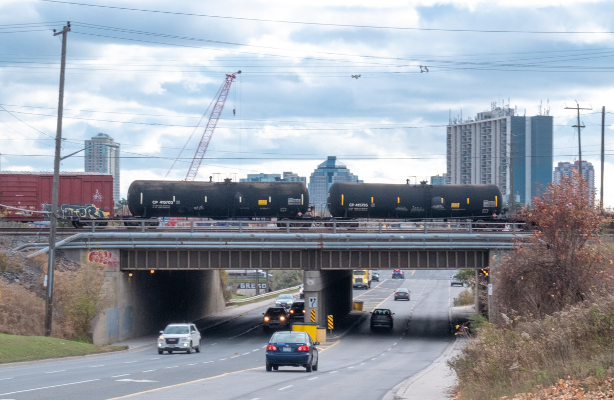 below: Immediately north of Nugget Avenue are train tracks. This is the western edge of the large CPR Toronto Yard. If you are interested in this yard and some of the trains, I blogged about it previously (Around the marshaling yards – with love and peace).