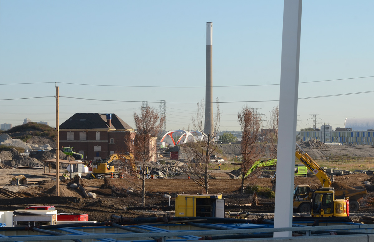 below: This blue object is part of the equipment needed to move dirt brought to the surface by the Tunnel Boring Machine that is working underground (There is also a TBM working out in Rexdale on the Crosstown West).