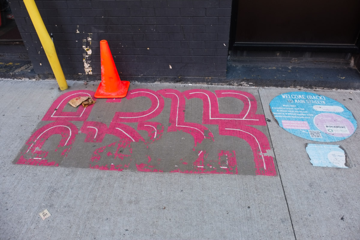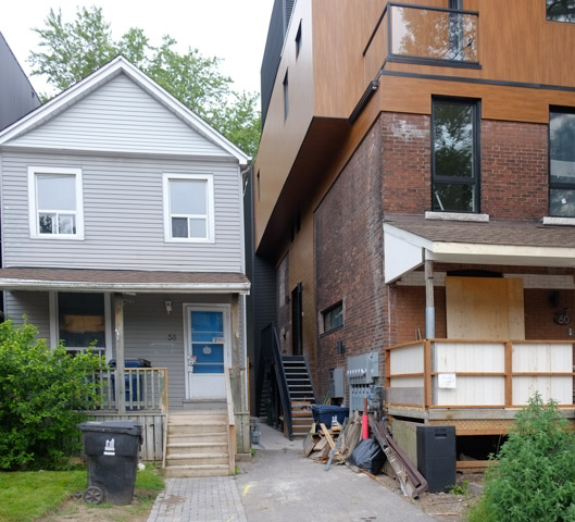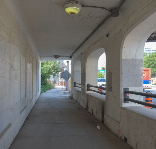 below: Walking McCowan north of Sheppard is partially impeded by a fence across the sidewalk…. but it is easily bypassed. Nugget Avenue is just beyond the fence.