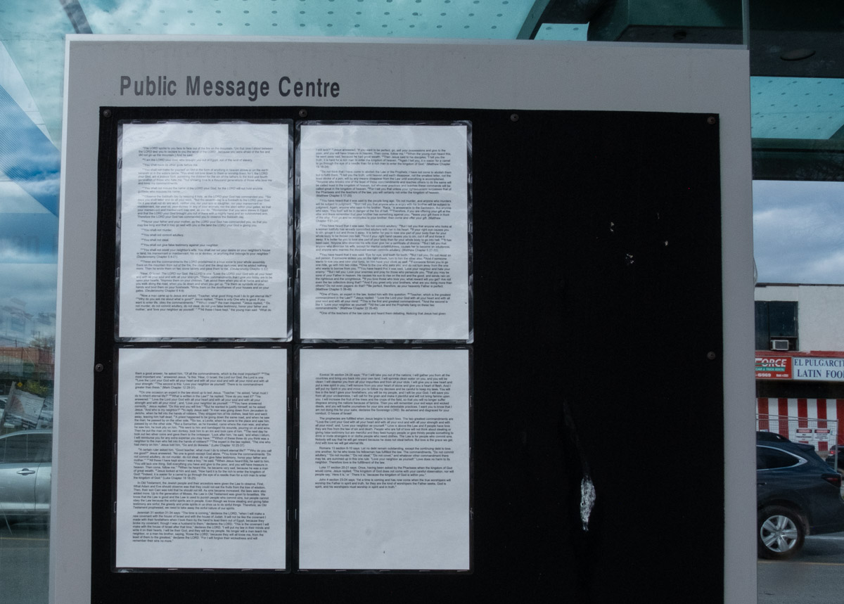 below: Spotted on a bulletin board at a bus shelter on Nugget (It’s a collection of bible verses).