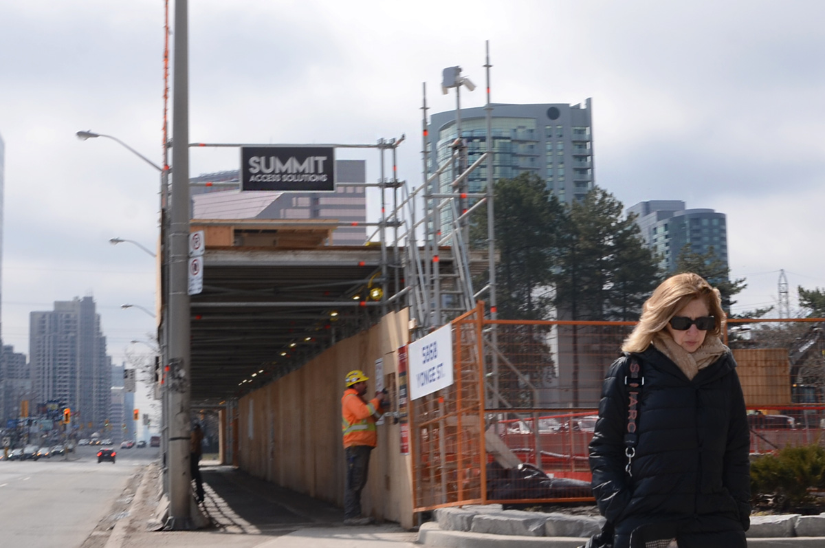 below: Looking north to the intersection of Yonge and Steeles. Steeles Ave has been the northern boundary of the City of Toronto since 1953. All of the tall buildings in this picture are north of Steeles and are in Thornhill (York Region).