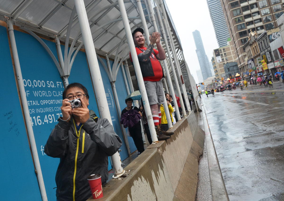 below: The northwest corner of Yonge and Queen is still behind hoardings.