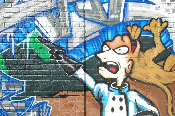 below: This mural can be seen from Milky Way although it is painted on the side of Stones Place on Queen St. West