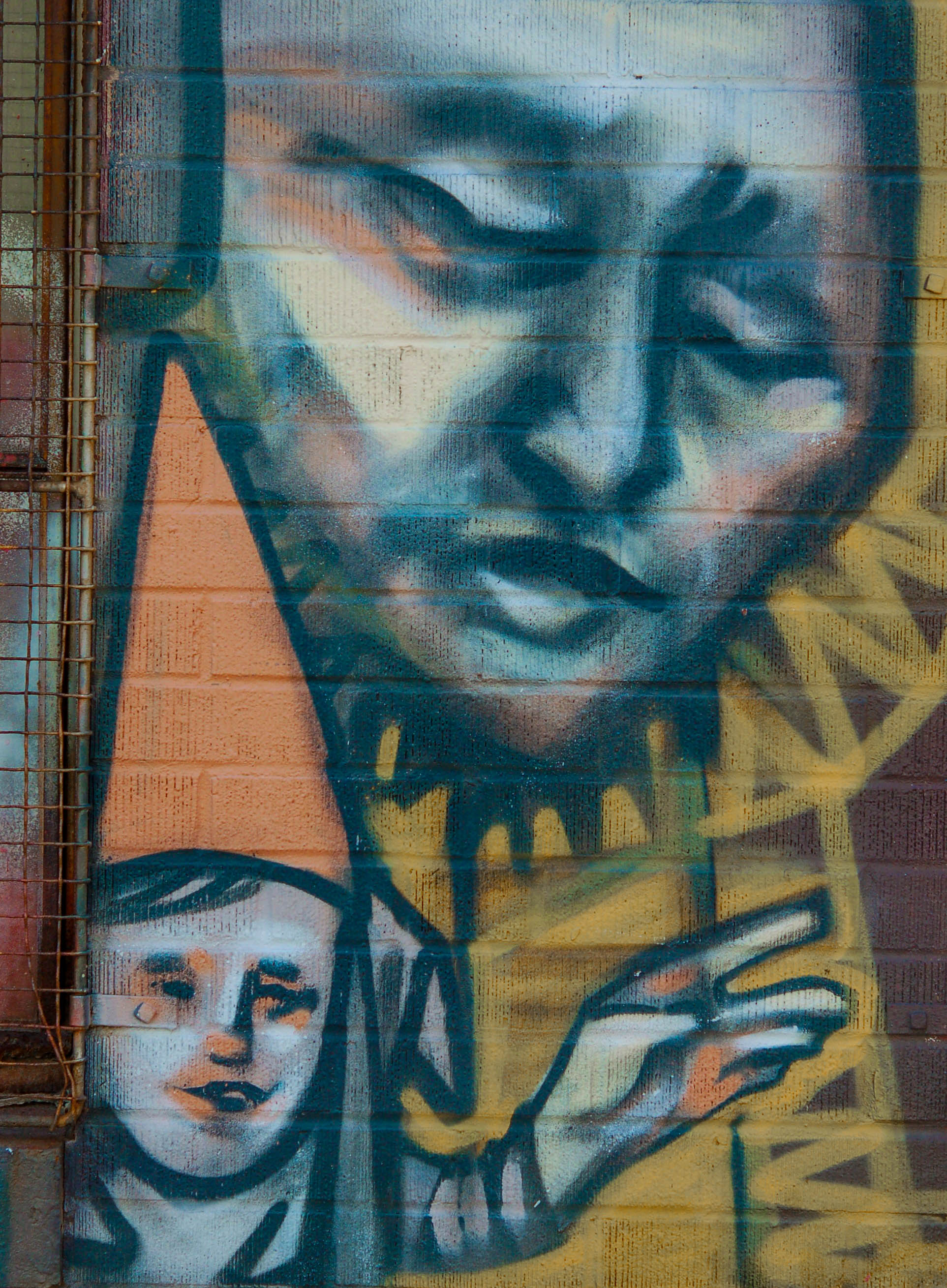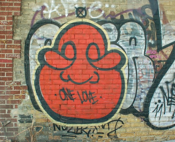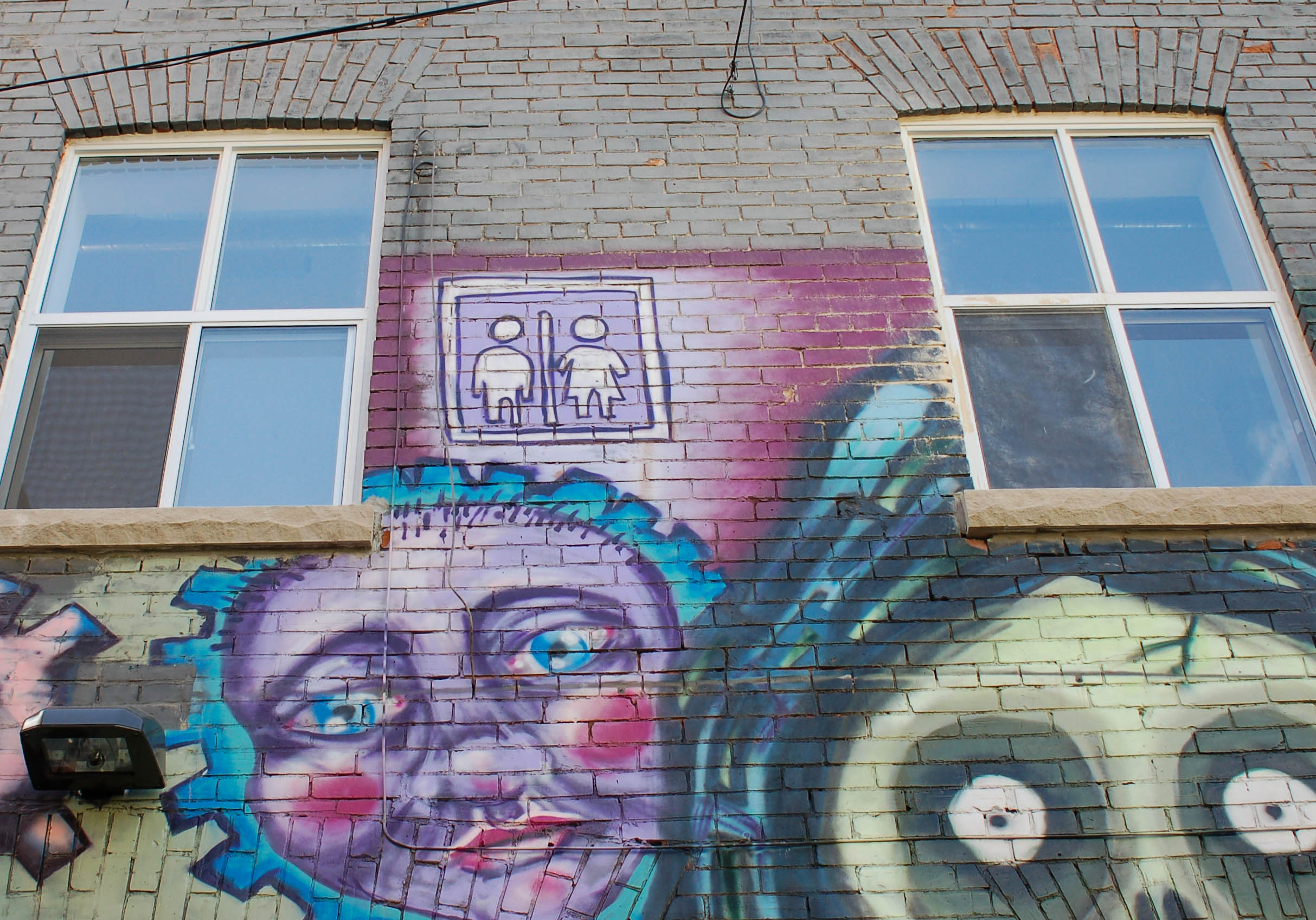 below: Back in October 2014, there was a large lovebot on the wall where the mural is now.