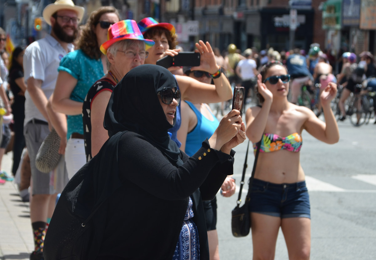 Walking with the revelers on Church Street on Sunday afternoon as the Pride Parade was winding down.