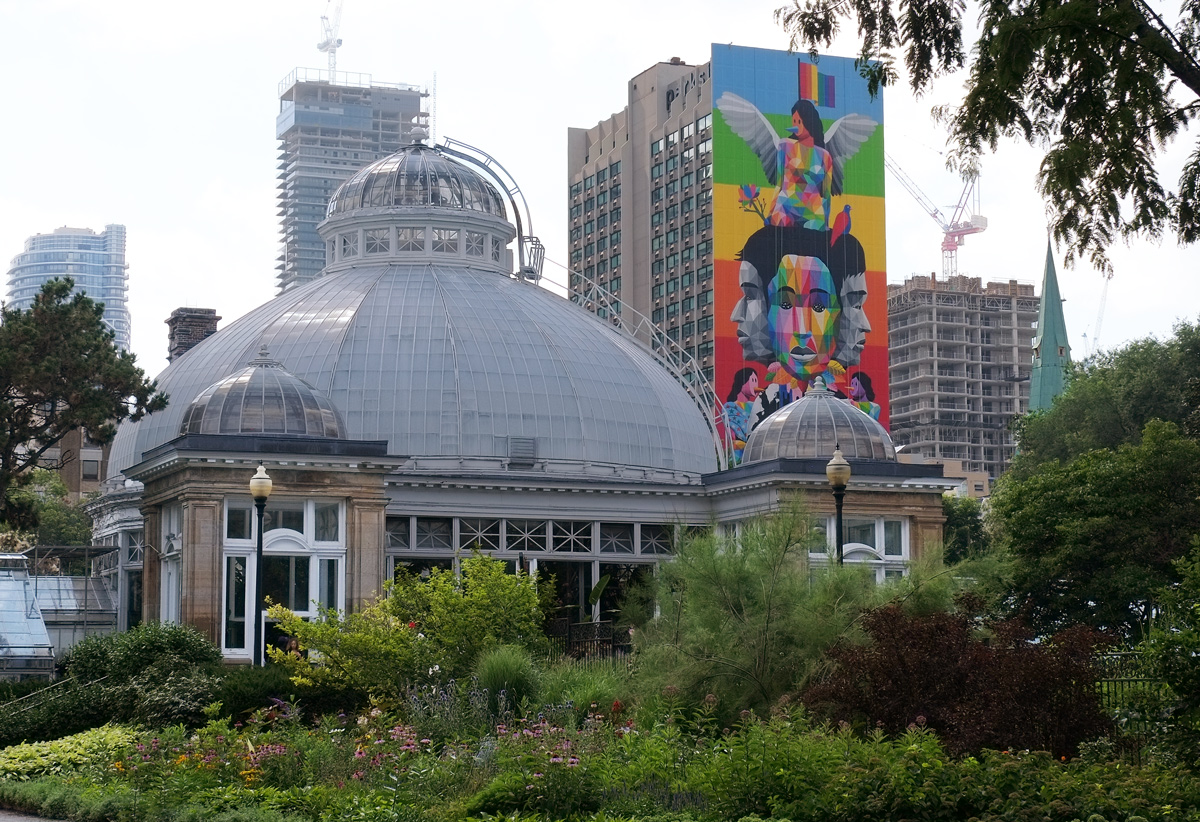 below: As seen from Sherbourne street. It’s tall! 23 storeys tall in fact. Not just a new mural but also a new landmark.