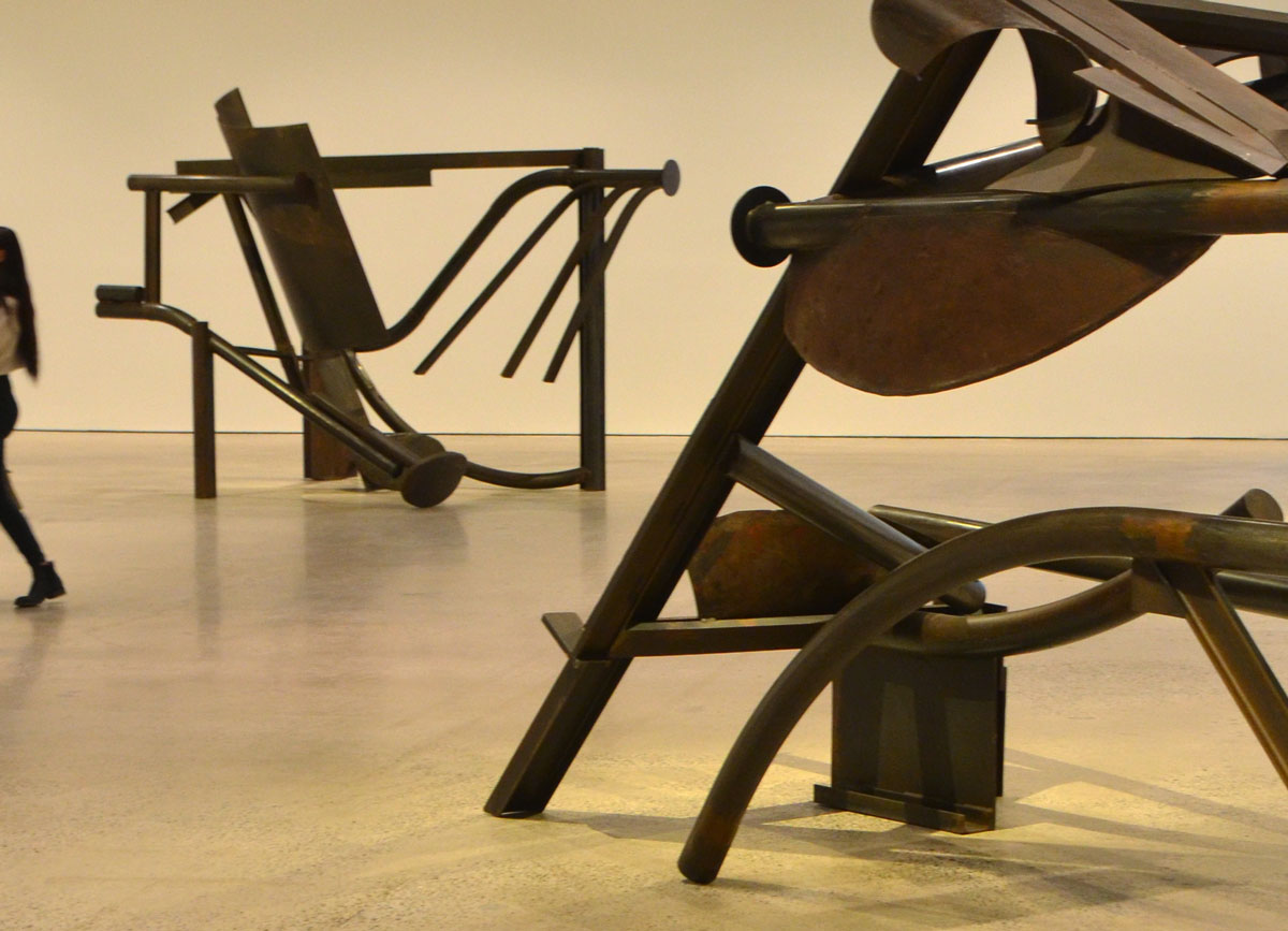 If they were outside, they would invite interaction. Touch them. Climb on them. In this gallery setting, there is a no touching policy. The words on the wall says that: “He [Caro] meditates on the passage of time, processes of decay, the painful realities of aging, and the future of modern sculpture.” Isn’t that why the gallery is doing their best to preserve them just the way they are?