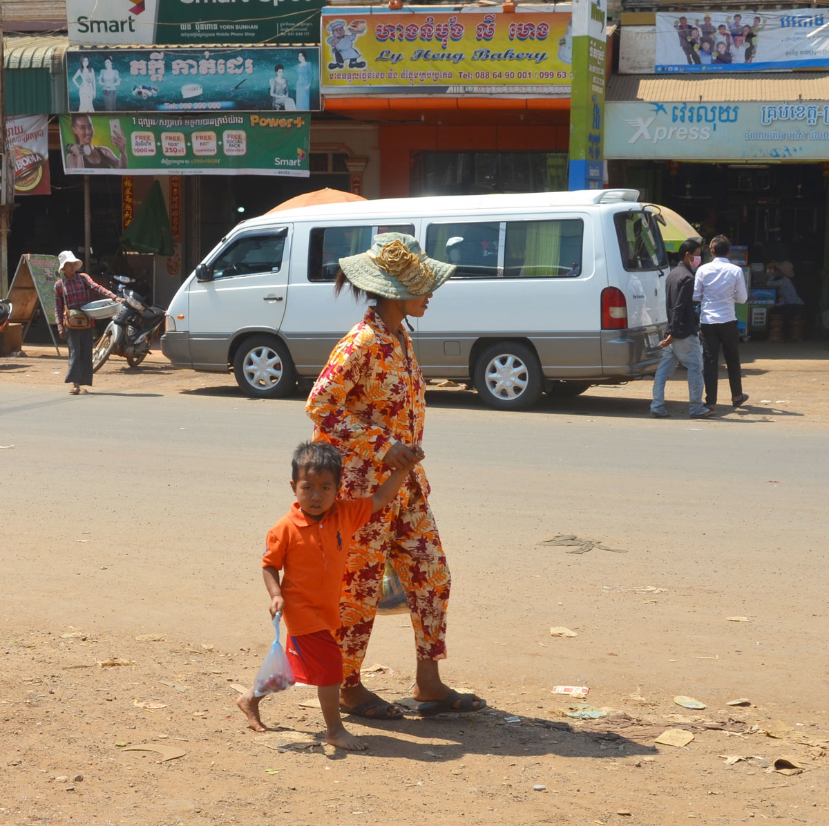Kampong Cham is a city on the Mekong River. It is the 6thlargest city in Cambodia with just over 63,000 inhabitants in 2006. Some of the following photos were taken on the road to Kampong Cham and some were taken as I walked around the city.