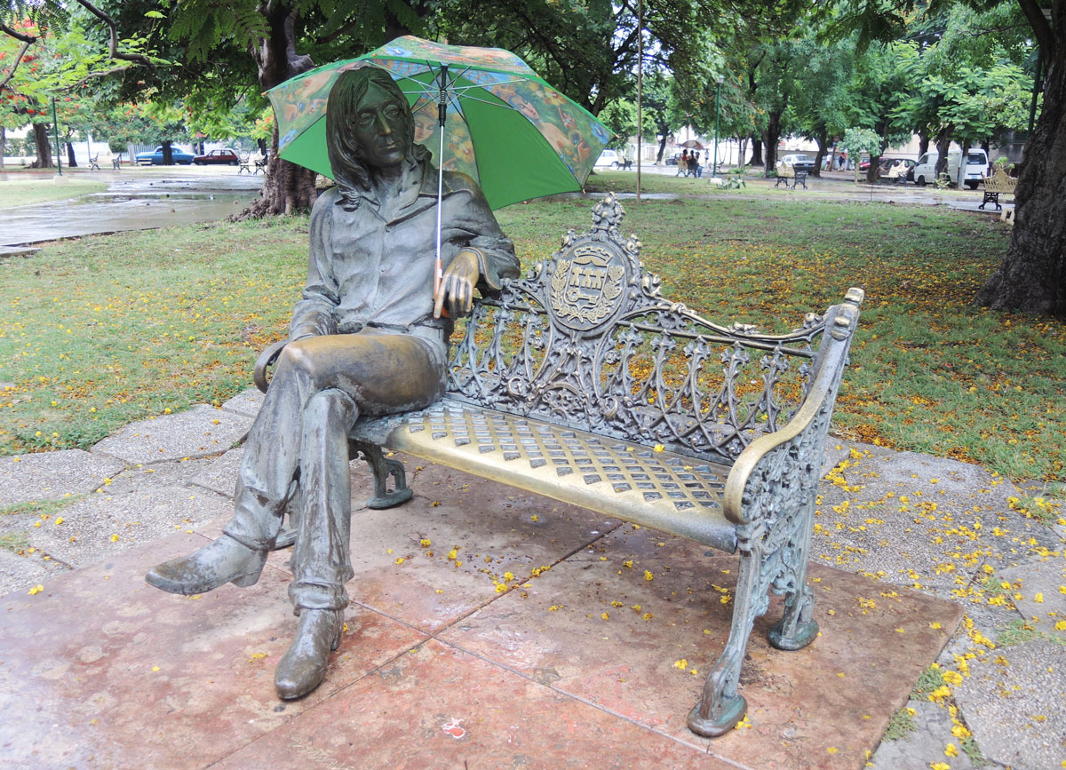 below: It was raining so I lent John Lennon my umbrella