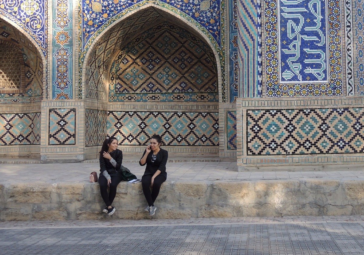 below: Like most of the old madrasahs in Uzbekistan, they are no longer used as schools. I’m sure that the interior space has not been as fully renovated as the exterior, especially the upper levels. Now most of them are used to sell things. Instead of small classrooms, they have small shops.