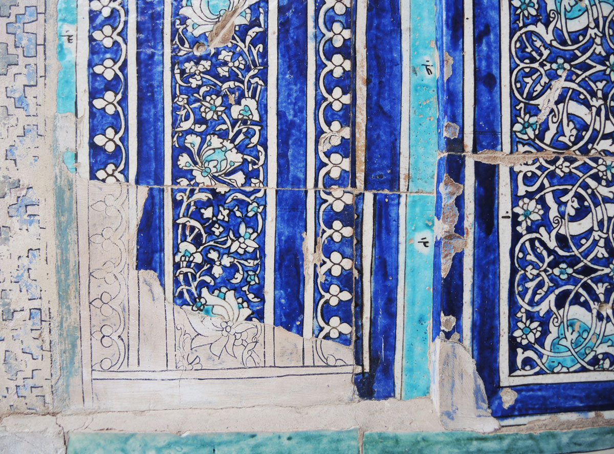 below: Examples of some of the many blue and white tiles used to decorate the buildings.