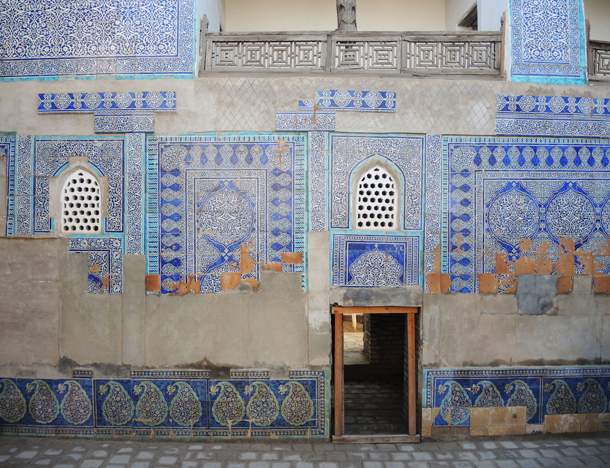 The old part of Khiva, or the inner part of the present day city, is enclosed by brick walls whose foundations are believed to have been laid in the 10th century, hence its name Itchan Kala which means ‘within walls’. Itchan Kala was the site of the khan’s palace and it was where high officials and clergy and rich merchants used to live. This is why the most important buildings like palaces and large mosques and madrassas are in the Itchan Kala. The ordinary people, small merchants, craftsmen and peasants lived in Dishan Kala (outside the wall).